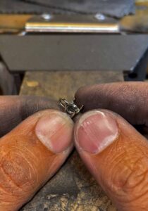 お客様にお待ちいただいているミルセッティングのリング。 センターストーンを一周留めたあと、 今度は反対まわりに一周しながら、ミルを整えていきます。 動画ではタイムラプスのようにスピー...
