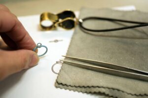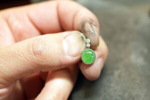 お母様へのプレゼントとして、 翡翠のペンダントをオーダーいただきました。 翡翠を、プラチナで丁寧に包み込むミルセッティング。 石を留めるこの瞬間は、いつも少し緊張します。 でも同時に、とても幸...